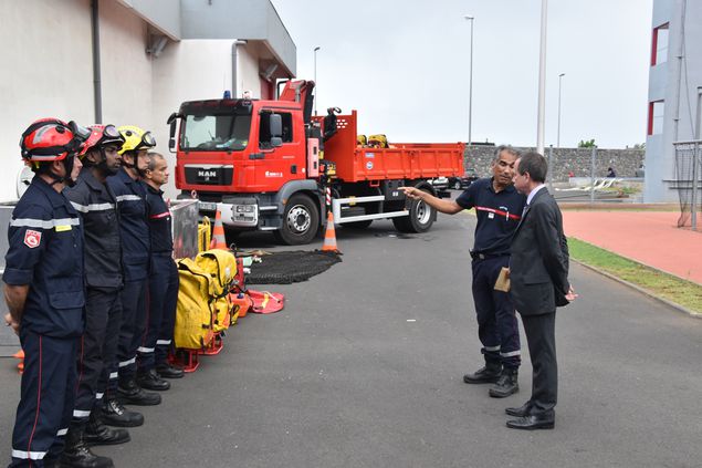 En effet, après avoir suivi une présentation conjointe menée en préfecture, par l'Etat-Major de Zone Protection civile de l'Océan Indien (EMZPCOI) et le SDIS 974 représenté par le Lieutenant-Colonel Paul Boucheron, Chef du groupement de la gestion des risques, par le Commandant Yann Le Gall et le Commandant Philippe Danesinga, Conseillers techniques de l'unité Sauvetage et Déblaiement, sur les aspects préventifs, planification et les mesures curatives mises en place afin de faire face aux risques technologiques et naturels, la Délégation ministérielle, en visite au centre de secours de Saint-Denis, a pu échanger avec des experts du SDIS de La Réunion sur l'ensemble des problématiques concourant à la sécurité civile et plus particulièrement sur celles rencontrées aux Seychelles.