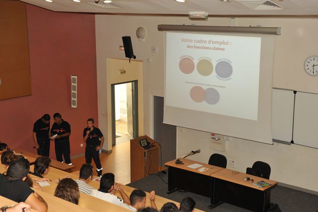 Une centaine d'étudiants ont fait le déplacement dans l'amphithéâtre de l'Institut Universitaire de Saint-Pierre pour assister à la présentation de ce concours externe accessible aux candidats d'un niveau BAC +2 ou d'une qualification reconnue comme équivalente, qui leur permettrait d'accéder à l'un des 110 postes ouverts en 2016 sur le territoire national.