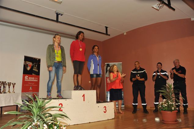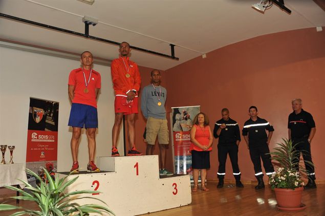 La proclamation des résultats a retentit dans le micro du Lieutenant Turpin, coordinateur sportif de l'évènement, à dix-huit heures trente. La journée s'achève dans, la fraicheur des hauts, pour la remise des récompenses, le personnels SDIS 974 est accueilli, dans la salle des fêtes " les Goménolés ", au styles coloniale.