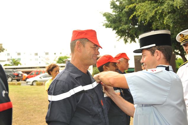 Une importante mise à l'honneur des hommes et femmes du service départemental d'incendie et de secours s'en est suivie en présence de Dominique Sorain, Préfet de La Réunion, des élus du conseil d'administration et des cadres de l'établissement. Réunis sur le parc Arc-en-Ciel de Plateau Caillou, ces derniers ont été décorés des médailles d'honneurs (pour 169 sapeurs-pompiers) et du travail (pour 31 personnels administratifs).