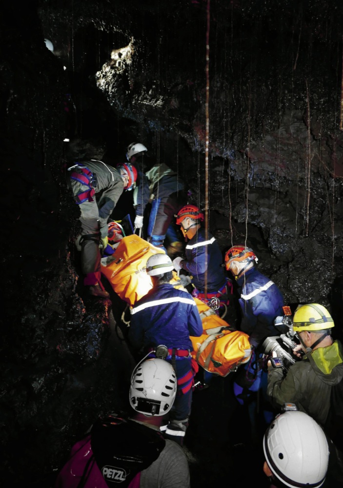 Retour en images sur l’un des exercices pratiques dans un tunnel de lave avoisinant un développement de 500 mètres sur le site de la « coulé 2004 » de Sainte-Rose où suite à un éboulis, un touriste est resté coincé et présente des traumatismes à la fois physiques et psychiques.