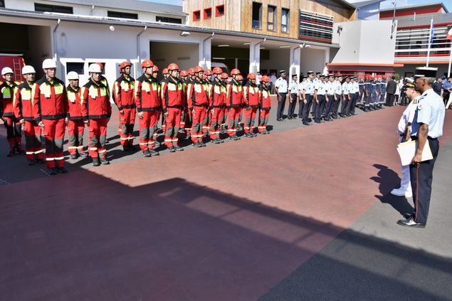 -Remise officielle des insignes du Groupe de Reconnaissance et d’Interventions en Milieu Périlleux (GRIMP) aux 46 sapeurs-pompiers membres de cette unité spécialisée dans les opérations en milieux verticaux : falaises, ravins, grues, édifices, grottes, tunnels de lave, canyons…